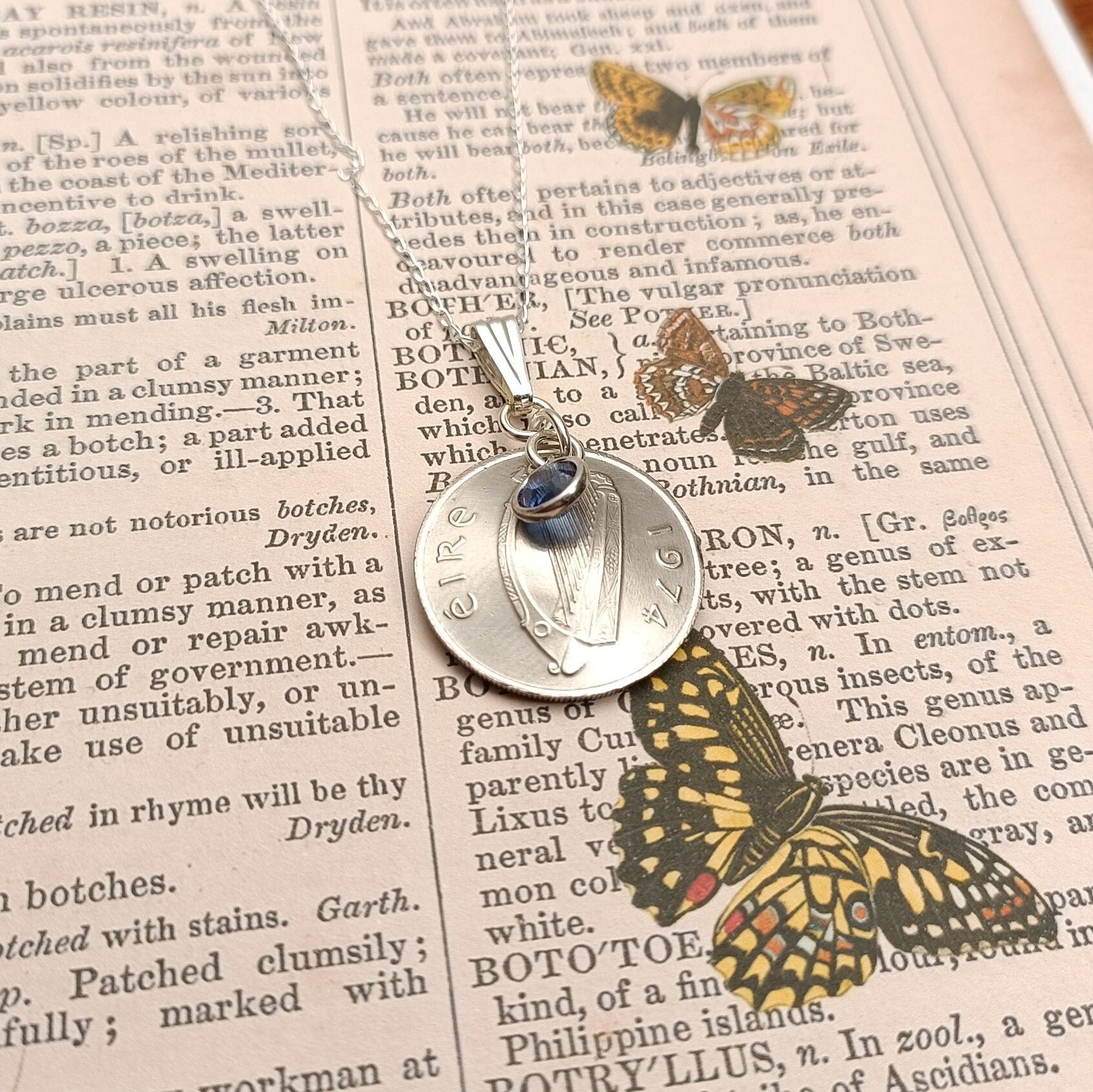 1975 Irish coin necklace for a 50th birthday, 1975 Irish Necklace and Birthstone