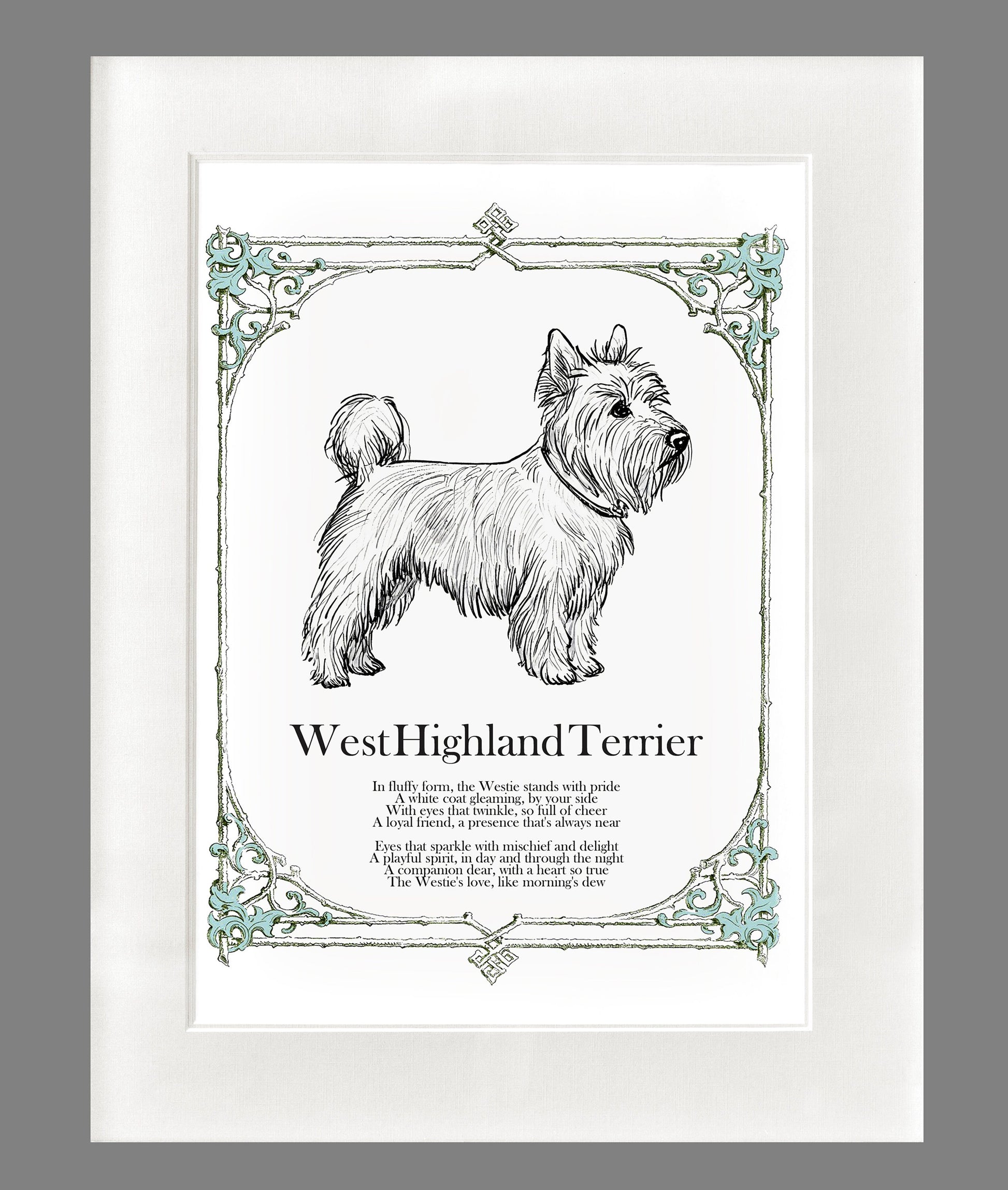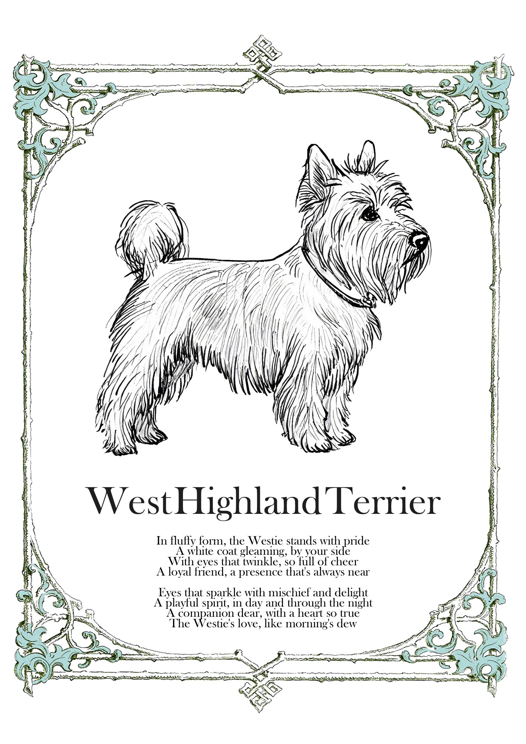 West Highland Terrier Print, Illustrated Dog Poem, Antique Style Westie Sketch