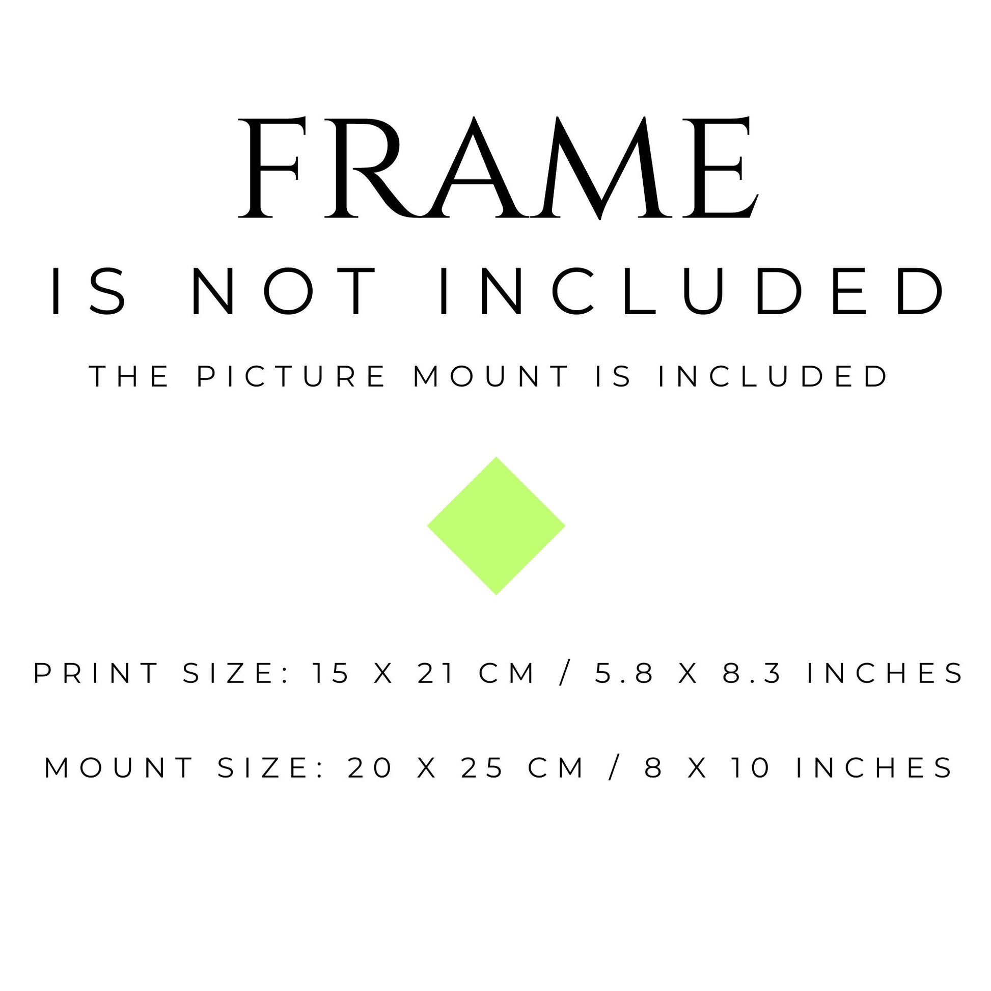 This is mounted on an 8x10 Picture Mount which is ready to be placed in standard 8x10 Frame, please note frame is not included.